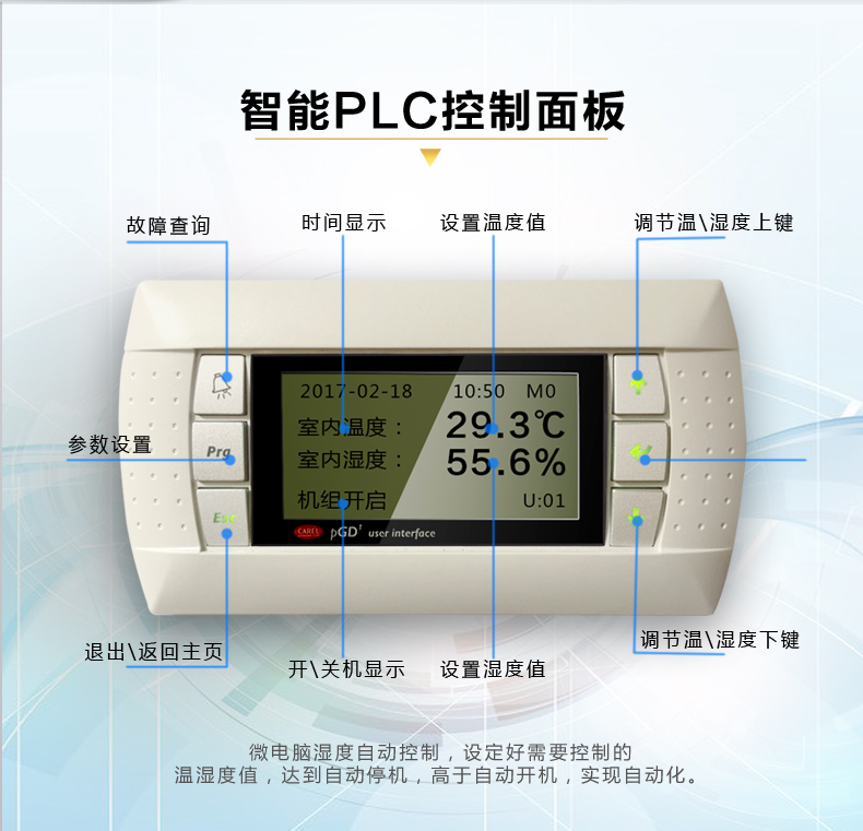 6、進口微電腦精密控制器:液晶溫濕度顯示,用戶參數設定,操作簡便控制精確;高精度溫濕度傳感器,能自動實現溫濕度控制;進口名牌接觸器、繼電器等電器元件;